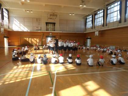先週から気温の高い日が続いています。子どもたちは今週も運動会の練習をがんばっています。4・5・6年生の様子です。