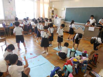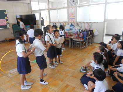 2・3時間目は生活科の学習で1・2年生が交流活動を行いました。2年生が企画したゲームで1年生の子どもたちは楽しく遊ぶことができました。2年生の子どもたちのしっかりした表情がとても印象的でした。