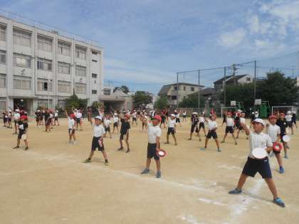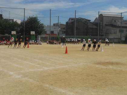 4年生の練習の様子です。団体演技はパーランクーの音の響きに迫力があり、子どもたちはとてもがんばっています。今日は、団体競技の練習も行いました。チームワークが大切です。