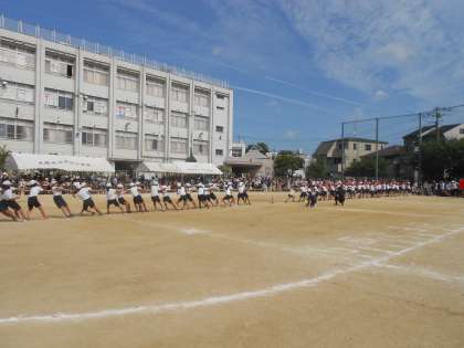 5年生の団体競技・個人走・赤白対抗リレーの様子です。