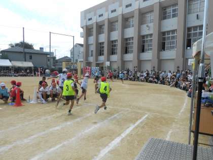 個人走・赤白対抗リレーの様子です。最後まで走り切りました。