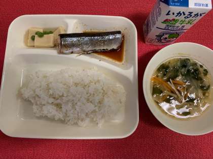 今日の献立は、『さんまのさんしょう焼き・すまし汁・高野どうふの煮もの・米飯・牛乳』でした。