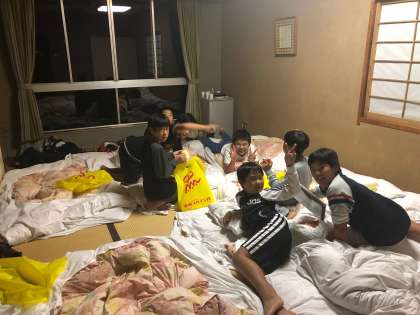 班長会議で1日の振り返りを行い、就寝準備をします。
