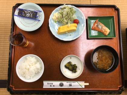 今日の朝食です。地元の食材を使った美味しい朝食でした。