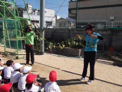 さつまいもがどんなふうについているかを見ました。