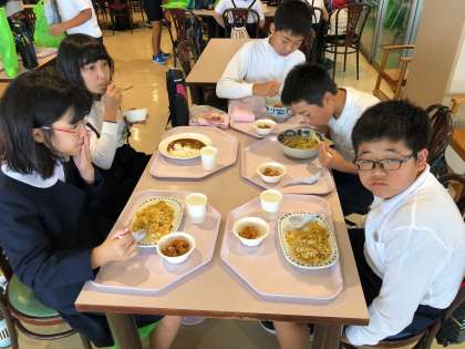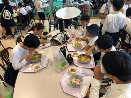 ミールクーポンを使っての昼食です。グループごとで食べています。
