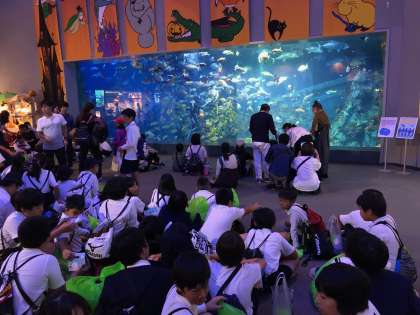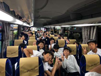 見学を終えて最後の活動、たぬき村での陶芸教室です。バスでの移動となります。