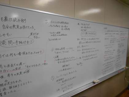 研究授業後の研究討議会です。今日は大阪市教育センターの先生に指導・助言をいただきました。先生方は研究授業の検証を熱心に行いました。