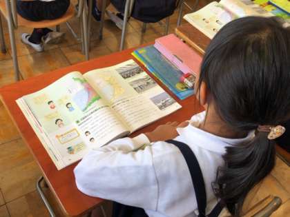 八尾市は歯ブラシの生産日本一の町であることを知り子どもたちは