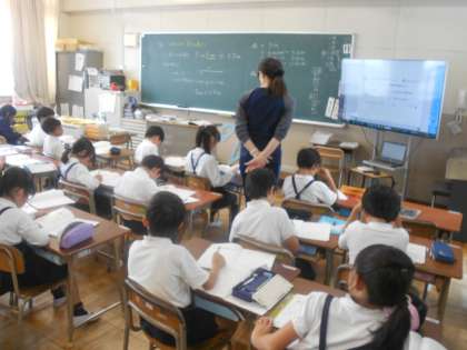 3年生の算数の学習の様子です。学級を2分割して学習を行っています。子どもたちは小数の学習に取り組んでいました。