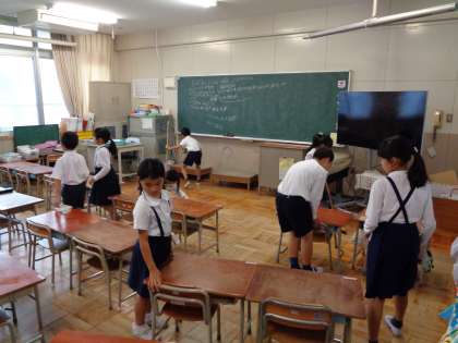 給食の後は、6年生が掃除場所を分担して、ていねいに掃除ができました。来週のオリエンテーリングに向けてさらになかよしになれたと思います。