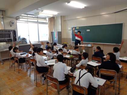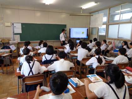 3年2組は、算数科で「小数のたし算」を学習しています。計算の仕方を考えて発表しています。