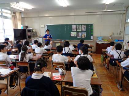 6年1組は国語科で、写真からイメージする物語づくりをしています。文章の構成を工夫して書くことをめあてにしています。