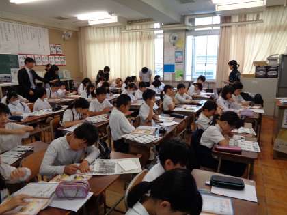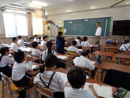 5年生は外国語の学習に取り組んでいました。今日は中学校の先生が参観に来られていました。4年生の算数の学習では、式を立てるときの自分の考え方を述べることができていました。