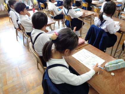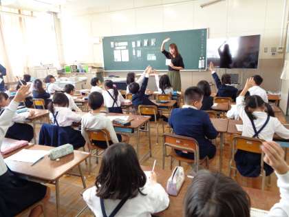 2年生では栄養指導がありました。カルシウムを多く含む食品について、提示物を工夫しながら授業が行われました。