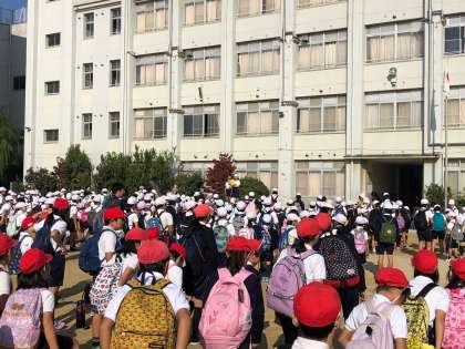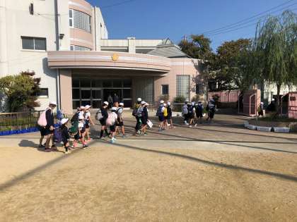 おはようございます。快晴のもと、今日は予定通り全校オリエンテーリングに出発しました!