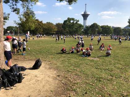 お弁当を食べたあとは縦割り班でみんな遊びをしました。6年生がみんなをリードしてくれていました。
