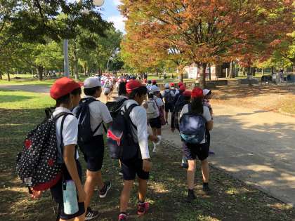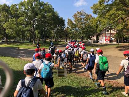 高学年、中学年は学校に向かって帰ります。