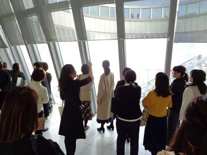 本日は、PTA社会見学が開催されました。見学場所は梅田スカイビルでした。梅田スカイビルは、「世界の建築トップ20」に選出されている日本唯一の建物です。今日は梅田スカイビルガイドツアーと空中展望台の見学を行いました。その様子を紹介させていただきます。