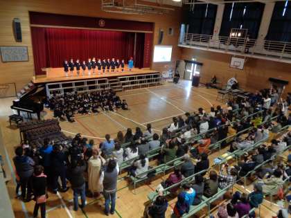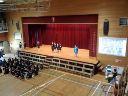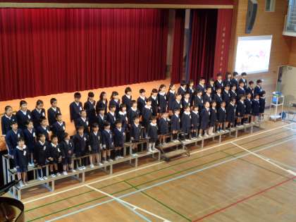 2年生は「まちのすてきをしょうかいします」です。生活科の町たんけんで学習したことを、国語科で学習した「名前をみてちょうだい」のお話を交えながら発表しました。最後の合唱も素敵でした。