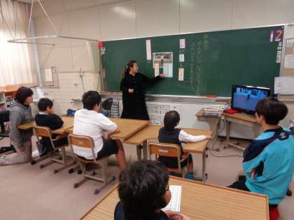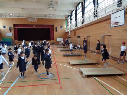 5年生は算数の学習で三角形の面積を求める公式を導いていました。なかよし学級では、「だれが」「なにを」「どうする」の文章作りを、個々の課題に応じた手立てを考え授業を行っていました。今日からなわとび週間です。たくさんの子どもたちが体育館に集まっていました。
