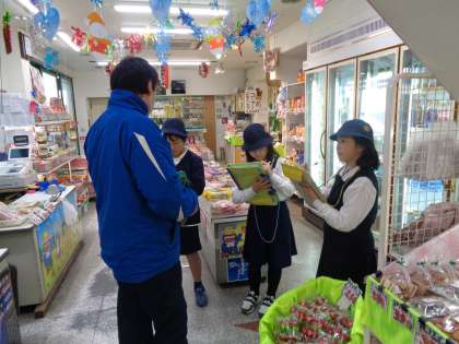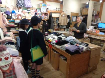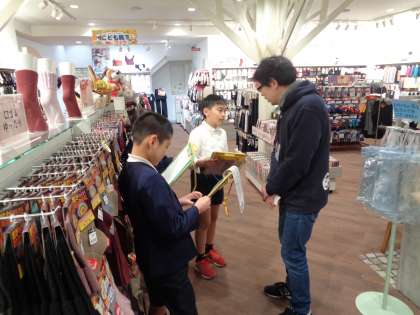 お店でのインタビューの様子です。一生懸命聞いていました。