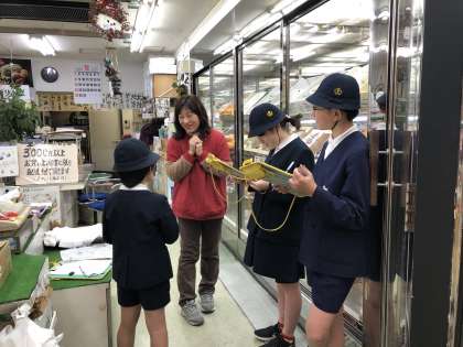 キッズマートの学習の一環として、千林商店街・今市商店街・京街道商店街でお店体験をしました。お客さんに来ていただくための工夫やお客さんに対する接し方など商売をする上での心構えを教えていただきました。今回学んだことを来年2月のキッズマートに生かしてほしいと思います。