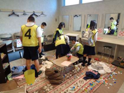 地震が発生したあとの部屋を再現してあり、そこから必要な救急物資をさがします。