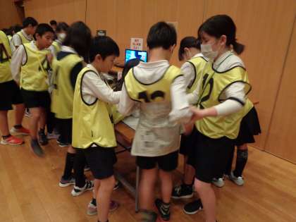 避難所開設の設定で、風邪をひいている人がいる場合、新聞紙やラップを使って腹巻を作る体験をしました。