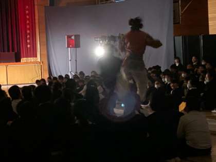 2,3時間目に、劇団アクロバット飛天の皆さんによる「西遊記」を全校生で鑑賞しました。劇団の名前にあるように、アクロバットな演出で迫力ある演技を観ることができました!孫悟空が仲間たちと協力する大切さをみんなで共有できた時間となりました。