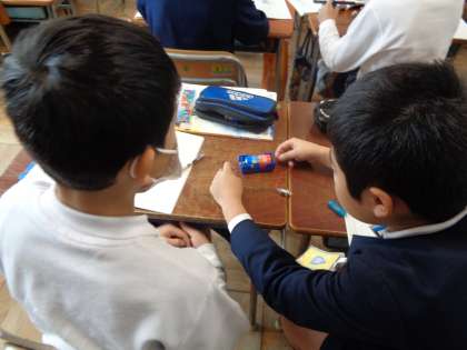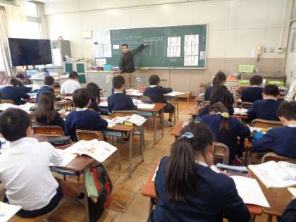 6年生の社会科の学習です。議会のしくみについて学習しています。3年生は理科の学習を行っていました。豆電球を使って、電気を通すもの、通さないものを調べていました。