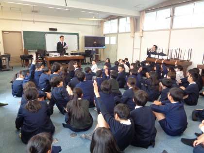 5時間目、6年生の租税教室がありました。租税教室は、旭税務署の皆様にお世話になり、毎年6年生で実施しています。どのような税金があり、その使い道などをわかりやすく教えていただきました。ジュラルミンケースに入った1億円のお札の束に見立てた見本も見せていただき、重さも実感させてもらいました。見本ですが子どもたちは喜んでいました。