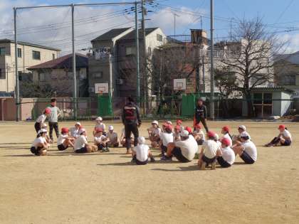 夢授業の様子です。3時間目は6年1組でした。サッカーをしている子どももいましたので、コーチとの試合は接戦になりました。楽しいサッカーの時間になりました。