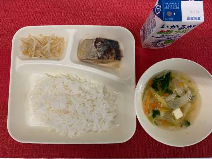 今日の献立は、『さばのみそ煮・すまし汁・もやしのゆずの香あえ・米飯・牛乳』でした。