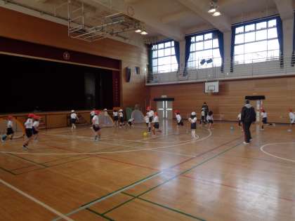 2時間目、3時間目は、2年生がボール蹴り教室の授業でした。旭区役所が主催でゲストティーチャーがこられて授業を行います。子どもたちは、楽しみながらボール蹴り運動のポイントを学ぶことができました。講師の先生方、ありがとうございました。