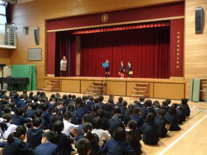 児童集会では子どもたちの作文発表がありました。1年生から3年生の代表の子どもたちが舞台上で発表しました。それぞれの学年に応じた内容で、しっかり書くことができていました。そして自分が書いた作文を堂々と発表できました。たいへん立派でした。また、発表を聞いている子どもたちは一生懸命聞くことができており、静寂の中、講堂は発表者の声だけが響いていました。4年生から6年生の作文発表は、放送を通して行う予定です。
