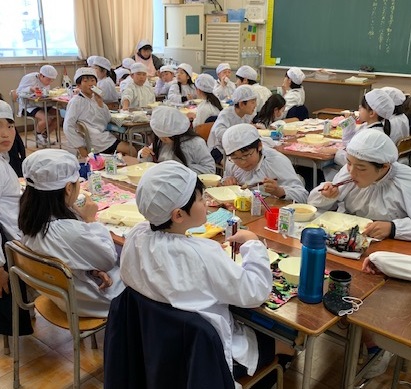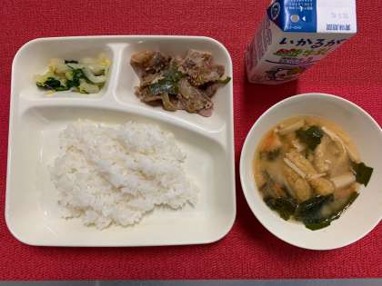 今日の献立は、『豚肉のごまだれ焼き・みそ汁・きくなとはくさいのおひたし・米飯・牛乳』でした。