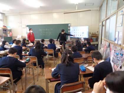 5年生は外国語の学習に取り組んでいました。CーNETの先生と一緒に楽しく取り組んでいました。