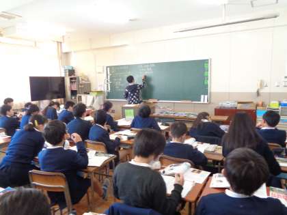 6年生は社会科の学習に取り組んでいました。国民主権について学習していました。子どもたちは社会の様子について様々な関心をもつことができていました。