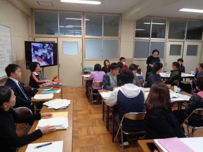 研究授業後の研究討議会の様子です。今日は本校前校長松本校長先生、旭東幼稚園の園長先生にご指導いただき、充実した討議会になりました。ありがとうございました。
