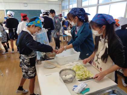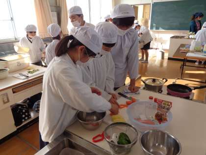 各グループごとに調理したいおかずを考えて、協力して活動する姿が見られました。自分で作った料理は美味しくて満足した笑顔いっぱいでした。