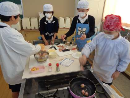 6年生が1時間目から4時間目まで学級ごとに家庭科の調理実習をしました。