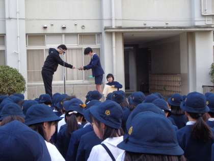 本日の児童朝会では、本校給食室の優秀票の紹介、よい歯と口の健康優良賞の表彰状披露、土曜日に行われた市長・教育長表彰式でいただいた表彰状の披露をさせていただきました。毎週、このように子どもたちの頑張りを紹介できることはありがたいです。