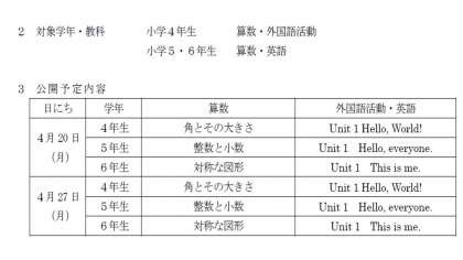 詳細につきましては、下記のリンク「臨時休業中の学習動画の公開について」のお知らせでご確認ください。