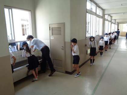 子どもたちには手洗いをきちんと行うことを指導しています。順番を待つ間は、間隔をあけて待つようにしています。今までの学校生活のようにはいかないところがあります。