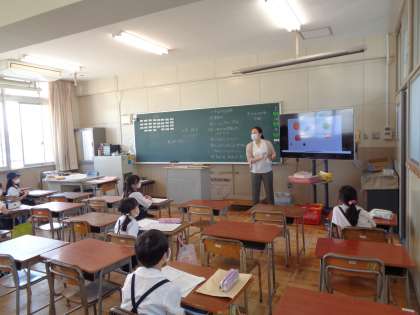 3年生の教室の様子です。習熟担当の先生の紹介もされていました。