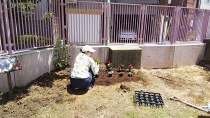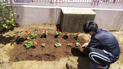 環境委員会で植える予定だった花の苗を植えました。ゼラニウム、サルビア、インパチェンスです。たくさんの花が咲きますよう、水やりをがんばります!