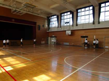 密集を避けるために、体育館で発育測定、視力検査を行います。今日は6年生が行いました。
