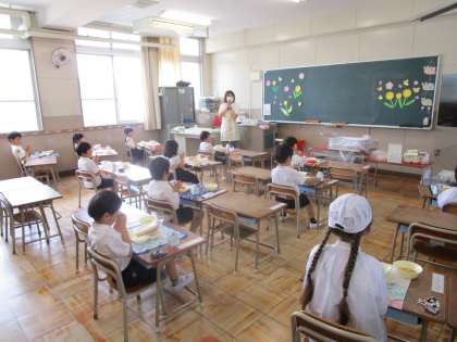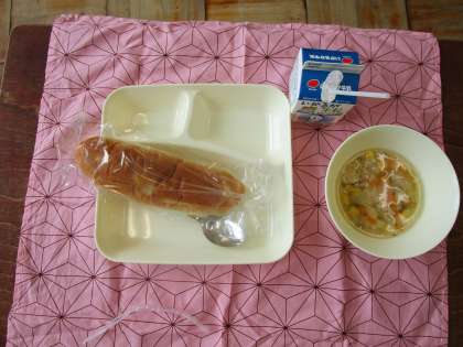 給食も始まりました。パン、牛乳、副食1品でのスタートになります。6月12日までは副食1品になります。献立をご確認ください。