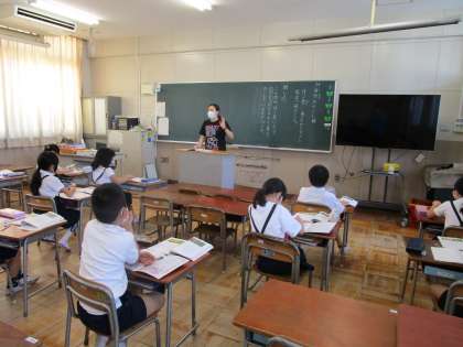 3年生は国語の学習と体育の学習を行いました。日差しが厳しく、運動場での体育は熱中症にも気を付けなければなりません。子どもたちは外で活動する機会が少なかったので、少しづつ体を慣れさせていかなければなりません。